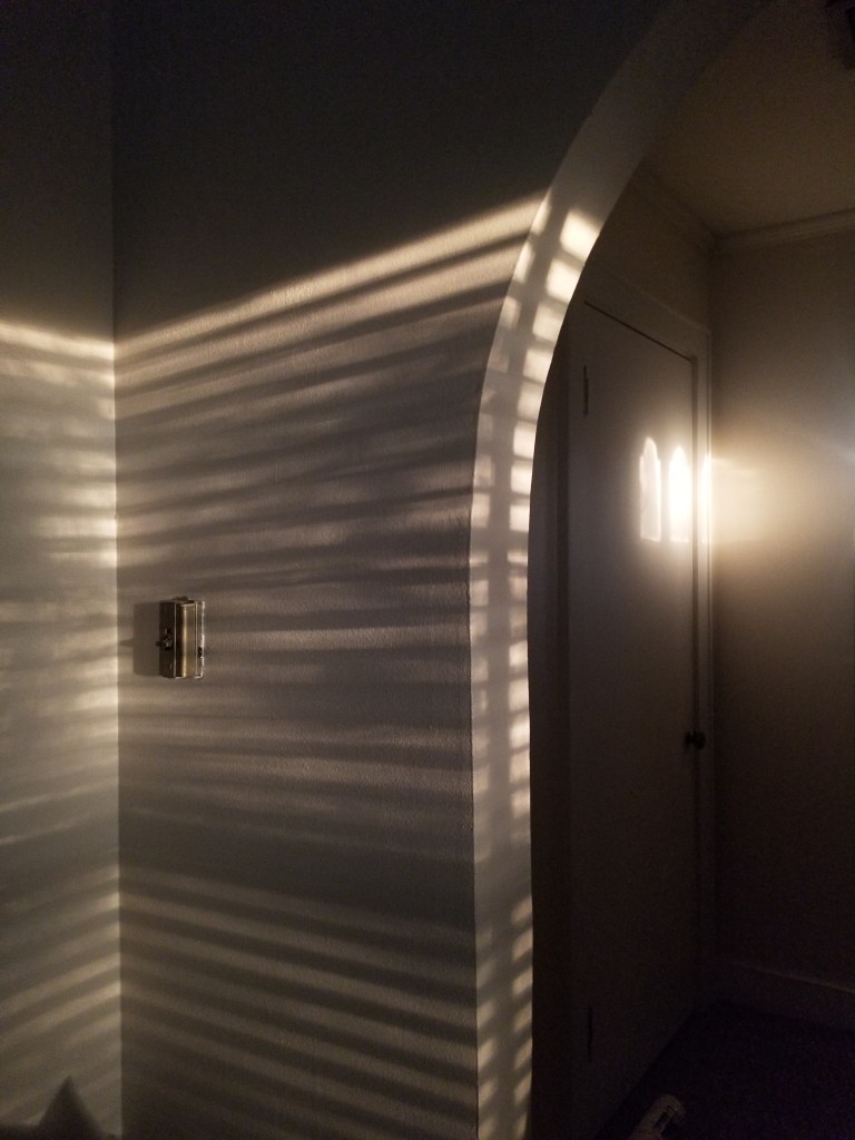 We are loving all the sun beams in our home. These shadows are from our Oak Trees outside.