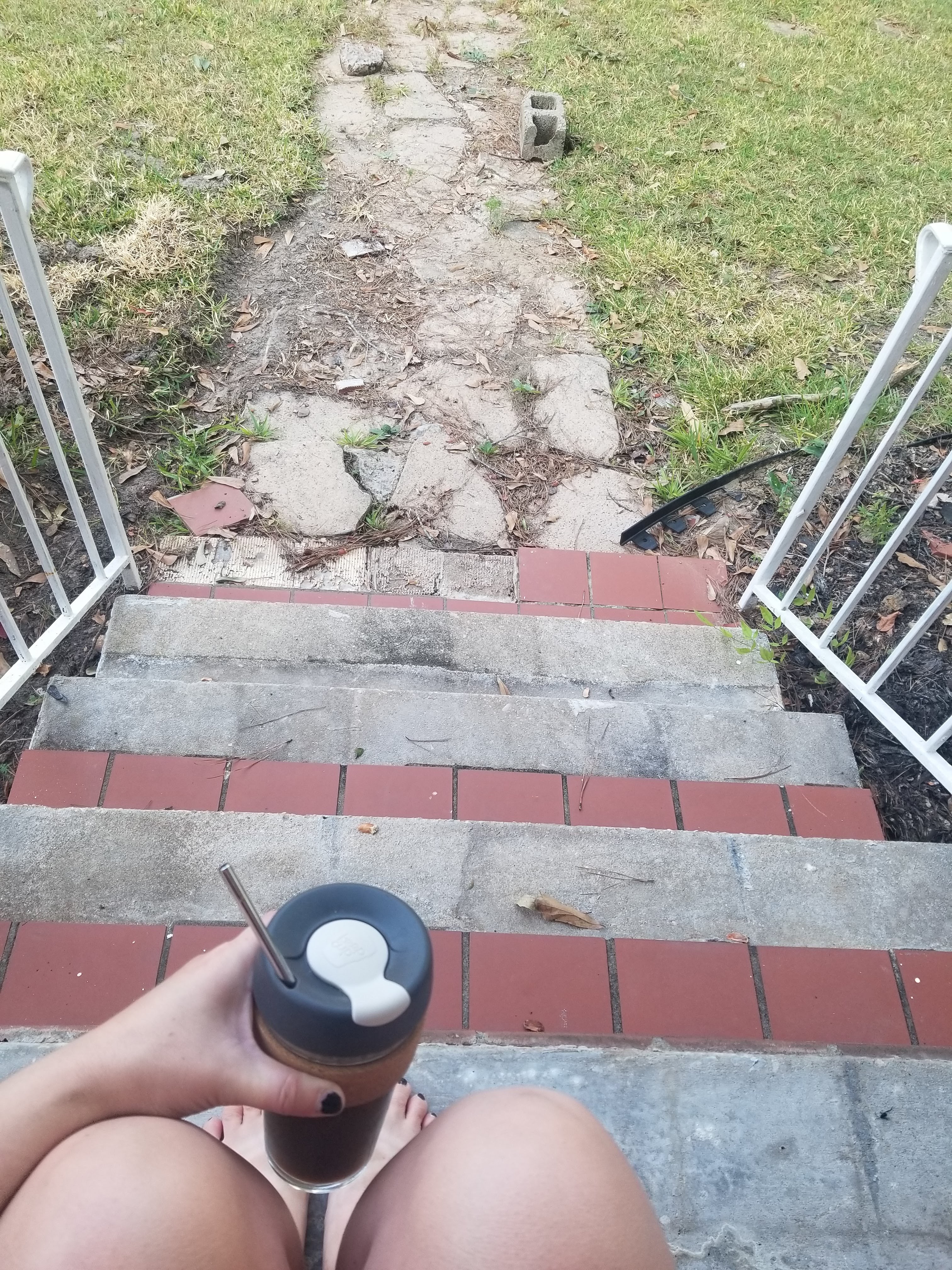 Chelsea has been working to chip off the front tile since it was broken and uneven.